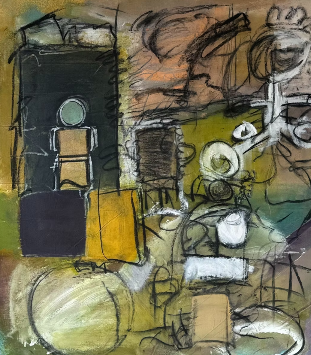 Put Them Grays on the Cover | 2025, Jesse Owens-Young | Acrylic, wax pastel and oil